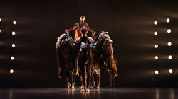 "The minimal stage set for both dances included a short wall upstage and a long ramp stage left, with a striking wall of lights (designed by Ben Rawson) looming tall just beyond the ramp. “Part 1: Horizons” opened to a dramatic and gorgeous flood of light that illuminated the stage and surrounding trees."