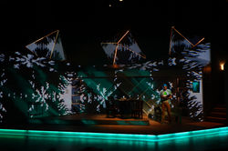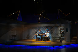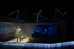 "The production is gorgeous to look at. Cody Russell puts together an immensely charming set, decorated with an array of nerdy memorabilia that will prove rewarding to the play’s target audience. The fantasy elements are vividly brought to life by lighting designer Ben Rawson and video designer Milton Cordero, the latter creating some dazzling visual effects to convey the imaginary world that the characters escape into."
